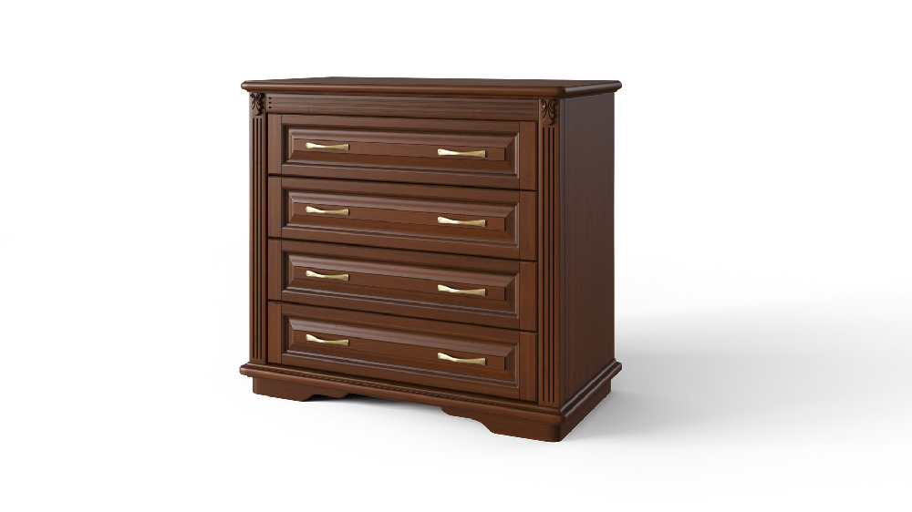 Элегантное изделие из 100 % массвиа древесины благородных пород бука или ясеня. Комод в базовой комплектации, имеет 4 выкатных ящика, оснащенных телескопическими направляющими. Четкая выверенность пропорций и простота линий в сочетании с высококачественной отделкой позволяют органично вписать это изделие практически в любой интерьер. Опционально комод может быть оснащен автоматическими доводчиками выкатных ящиков и изменен по высоте, за счет добавления или убавления ящика стандартного размеры. Верхний ящик комода, может быть разделен на два равных по размеру ящика. Сборка не требуется.