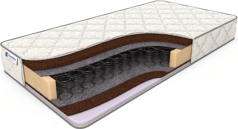 Разносторонний комбинированный матрас с одной переменной. Сторона А – наполнитель из латексированной койры придаёт матрасу необходимую жёсткость, не снижая уровня его анатомичности, то есть способности принимать форму тела, обеспечивающей высокий уровень комфорта. Сторона Б – внутренний наполнитель из кокосовой койры, внешний наполнитель из эластичной пены. Комбинация, позволяющая понизить уровень жёсткости и увеличить анатомичность. Конструкция смонтирована на классическом пружинном блоке Bonnel, отделённом от наполнителей прослойкой из льноджутового волокна, гарантирующего их сохранность и продолжительность срока службы матраса.