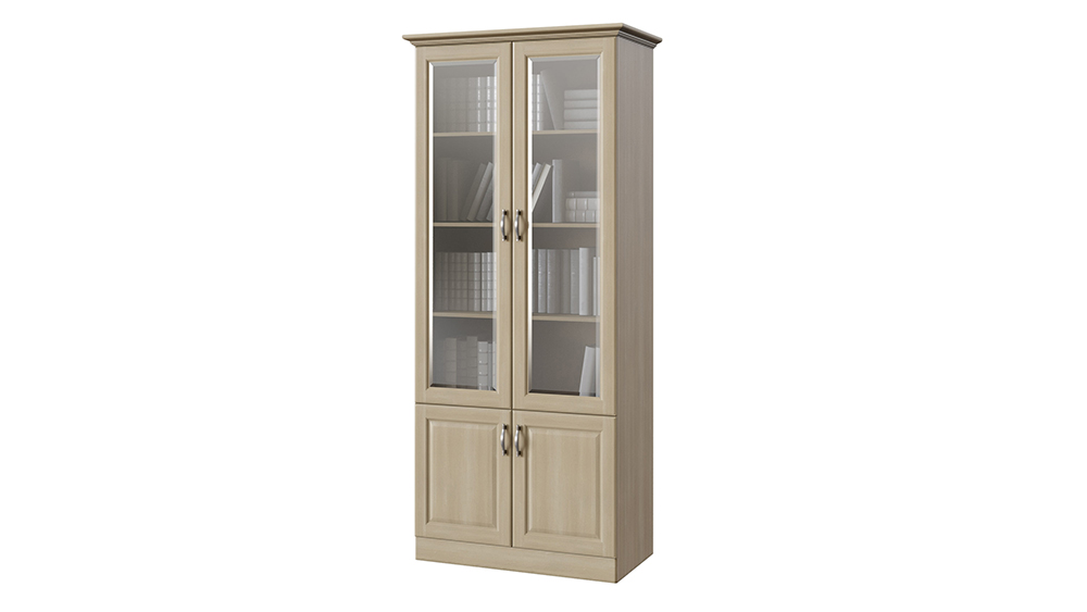 Классический шкаф библиотека Эдем с двумя створками выполнен из натурального массива дерева. Он станет идеальным дополнением вашего кабинета, ведь его оптимальный размер позволит навести порядок в ваших вещах и документах, но при этом он не займёт много места в комнате. А благодаря прозрачному стеклу с фацетом в дверцах шкафа останется визуально больше пространства и света в интерьере. В производстве использованы только качественные комплектующие, обеспечивающие плавное и бесшумное закрытие дверей. Подобрать изделие, идеально подходящее под ваш индивидуальный интерьер, вам позволит широкая цветовая палитра. Шкаф может быть изготовлен полностью из натурального массива дерева бука или ясеня. Даже полки шкафа сделаны из целостного массива, что делает вид шкафа более презентабельным и добротным. При желании немного удешевить изделие, мы можем изготовить боковины шкафа из ЛДСП. Обращаем ваше внимание, что такое решение никак не повлияет на визуальный вид товара. Внешние габариты библиотеки: 8 см. к ширине по внешним габаритам карниза. Требуется сборка.