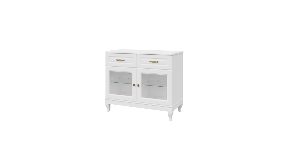 Комод Греденция Dreamline Эдем 2 Лайт (со стеклом) бук-белый 106х50х90