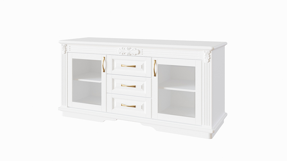 Комод Греденция Dreamline Палермо (3 ящика со стеклом) ясень-белый 156х53х75