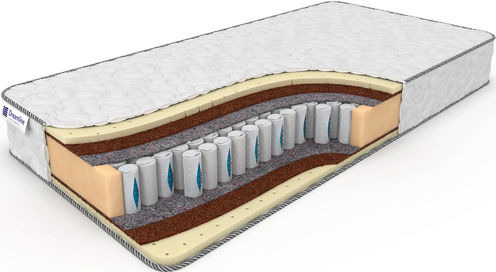 Матрас SleepDream Medium DS - индивидуально спроектированная модель, с заменой пружинного блока на DS (Double Spring, двойные пружины / пружина в пружине, расположенные в шахматном порядке ~ 570 пружин на одно спальное место). Главными преимуществами, в сравнении с оригинальной моделью и применяемым двойным столбом пружин, являются улучшенные: поддерживающие свойста для большого веса, уровень комфорта во время сна для спящих с большой разницей в весе, анатомические свойства и максимально допустимая нагрузка на одно спальное место. Товар является нестандартным изделием с сохранением гарантийных обязательств от фабрики Dreamline. Особенности и преимущества модели: Продолжительный срок службы; Надежность, прочность; Оптимальная жесткость, анатомичность; Поддержка позвоночника. Поддерживающие свойства, жесткость и эластичность: Натуральные наполнители позволяют мышцам тела достичь максимального расслабления, придают модели жёсткость, упругость, необходимую для поддержания спины в горизонтальном положении. Наполнитель матраса: Внутренний наполнитель из кокосовой койры (гипоаллергенная, выносливая); Утолщённый слой внешнего наполнителя из натурального латекса (долговечный, качественный, пропускает воздух, влагу); Термовойлок. Покрытие матраса: чехол изготовлен из стеганного холконом трикотажа SofTech - объемный, мягкий, приятный на ощупь, гипоаллергенный.