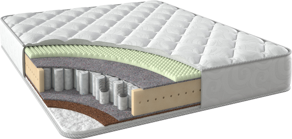 Недорогой матрас Stories Атон ТФК с разносторонней жесткостью (средняя сторона и умеренно-жесткая). Среднюю жесткость матрасу обеспечивает искусственная пена Ergo Foam, ее плотность оказывает минимальное обратное давление, что помогает снять основную нагрузку с мышц и суставов, а рельефна структура создает эффект микромассажа. Вторая сторона, выполнена в комбинации жестких наполнителей, искусственного холлофайбера и натуральной кокосовой койры, что помогает точно распределить нагрузку. Данная модель, за счет комбинированных сторон наполнителя, обладает ортопедическим и анатомическим эффектами. Подходит парам с большой разницей в весе, пожилым людям, спортсменам, и всем, чья профессиональная деятельность связана с интенсивной физической нагрузкой. Наполнители: - независимый пружинный блок TFK, - Ergo Foam, - кокосовая койра, - холлофайбер, - термовойлок Чехол – хлопковый жаккард, простеганный на синтепоне (100 гр.) Материалы гигиеничны, гипоаллергенны, безопасны. Хорошо пропускают воздух, при этом не накапливают влагу и пыль.
